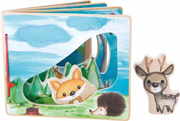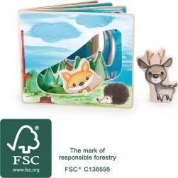 Intrați în pădurea adâncă cu această carte interactivă din lemn care stimulează imaginația copiilor. Datorită figurinelor vulpii și cerbului, care ajută la descoperirea florei și faunei, fiecare joc devine o experiență unică.
