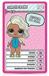 Intrați în lumea L.O.L. Surprise! și bucurați-vă de un joc de cărți dinamic, în care victoria este decisă de istețime și de alegerea corectă a categoriei. Top Trumps dezvoltă clasicul „război” pe baza mai multor parametri și îl completează cu personajele îndrăgite L.O.L. Surprise!, de care copiii se vor îndrăgosti.