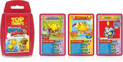 Seria populară Top Trumps aduce o ediție din universul SUPER ZINGS din Kaboom City. Fiecare carte prezintă un personaj cu cinci atribute numerice (de ex. magie, curaj, înțelepciune). Alegeți cel mai bun atribut, comparați cu ceilalți și câștigați cărțile lor. Valoarea cea mai mare câștigă – jucați până când un jucător adună întregul pachet.