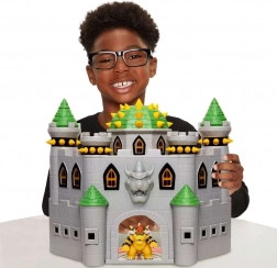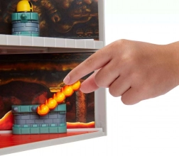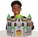 Retrăiți momente iconice din SUPER MARIO în decorul elaborat al Castelului lui Bowser. Construcția pe două niveluri, în tonuri de gri cu acoperișuri verzi și caracteristicele „țepe”, aduce o atmosferă autentică. La intrare vă întâmpină capul lui Bowser, unul dintre turnuri activează melodii din joc, iar interiorul prinde viață datorită liftului mobil, zăvorului și cuștii capcană.