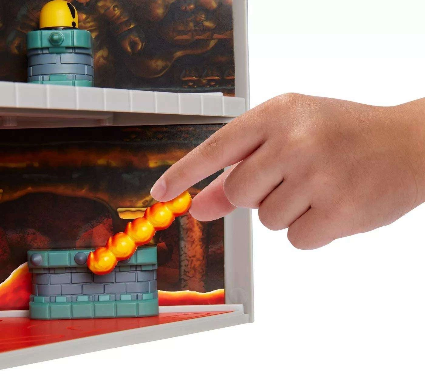 - Figurină Bowser, panou frontal al castelului, 2 panouri laterale, 2 turnuri, 2 vârfuri de turn, acoperișul castelului cu turnulețe, cupolă cu țepe, 1 cușcă, 2 seturi cu lanțuri, partea inferioară a castelului, nivel cu lift și zăvor, fundal, coală de autocolante