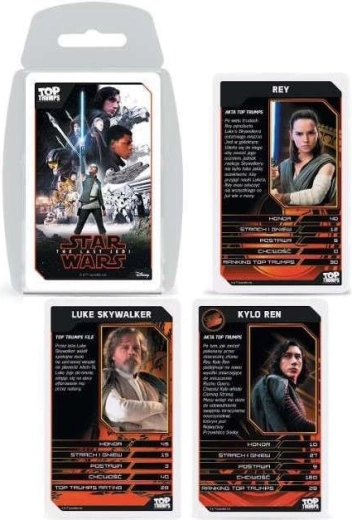 Top Trumps este un joc de cărți de familie, ușor și captivant, în care compari caracteristicile personajelor. Fiecare carte are cinci parametri numerici – cine alege categoria mai puternică ia cărțile adversarilor. Jocul curge rapid, oferă tensiune și strategie și, datorită personajelor îndrăgite din Star Wars, îi distrează atât pe copii, cât și pe adulți.