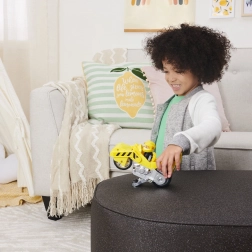 Pornește spre șantier și în misiuni de salvare cu buldogul Rubble și motocicleta sa galbenă de cascadorie din seria Moto Pups. Construcția robustă, detaliile galbene accentuate și roțile mari asigură o stabilitate excelentă, în timp ce mecanismul cu recul oferă copiilor multă distracție în viteză.