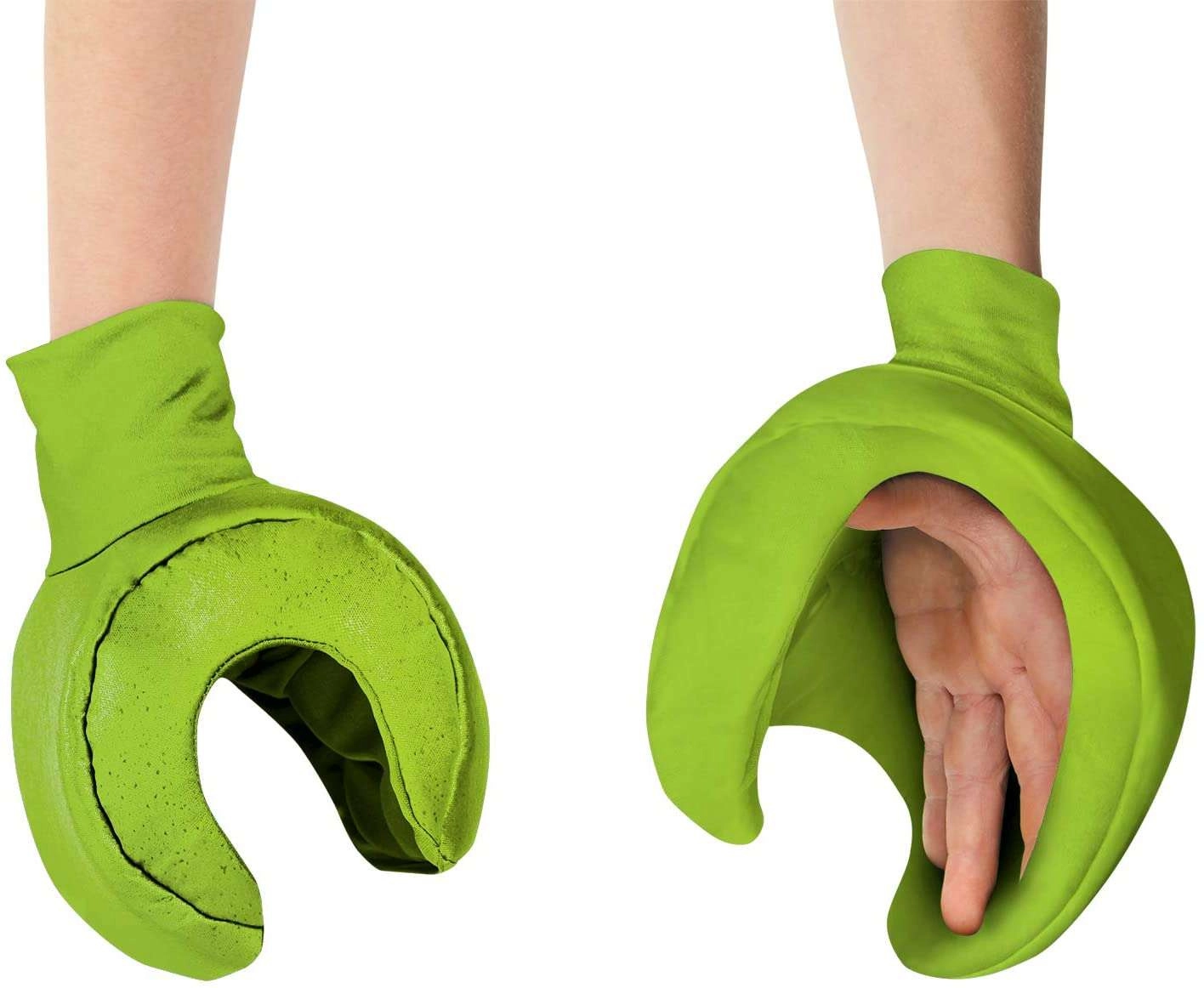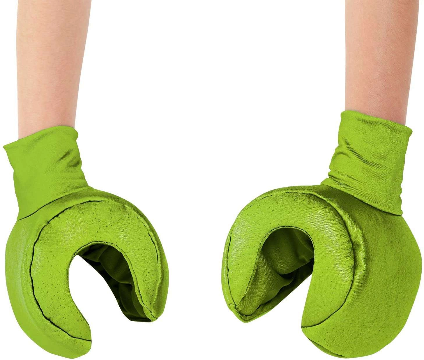 Tunica mov cu imprimeu de curea și petice, pălăria caracteristică și mâinile verzi creează instant un look de „minifig” ușor de recunoscut, pe care copiii îl adoră.
