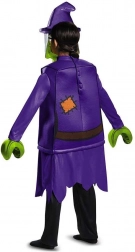 Design inspirat de figurinele LEGO, cu tunică mov, imprimeu cu centură și petice și cap de vrăjitoare verde pentru un efect inconfundabil.