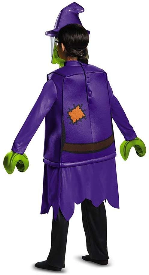 Acest costum de vrăjitoare licențiat în stil LEGO de la brandul Disguise aduce un design mov puternic, „față” verde de minifigurină și pălărie ascuțită caracteristică. Masca bine gândită, cu plasă la ochi și bandă elastică, asigură purtare sigură și confortabilă, în timp ce căptușeala moale se așază plăcut pe frunte.