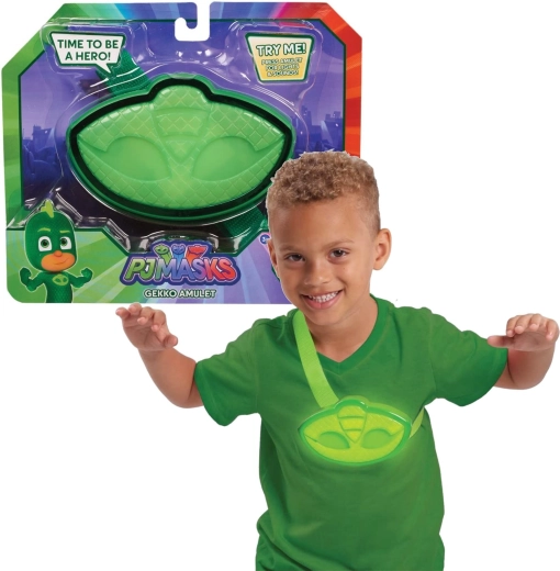 Deveniți eroul nopții ca Gekko din serialul animat PJ Masks. Amuleta verde cu curea se prinde ușor pe piept și, printr-o singură apăsare, pornește efecte luminoase și melodie cu sunet. Un accesoriu perfect pentru costume sau pentru joaca de sine stătătoare de-a eroii.