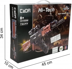 Construiește un model detaliat al legendariei puști AK-47 din setul CaDA, cu 738 piese. Blocuri rezistente, elemente mobile, încărcător detașabil și accesorii pentru construcție creativă și expunere. Compatibil cu alte seturi de construcție, ideal pentru copii 8+ și pasionați de machete.