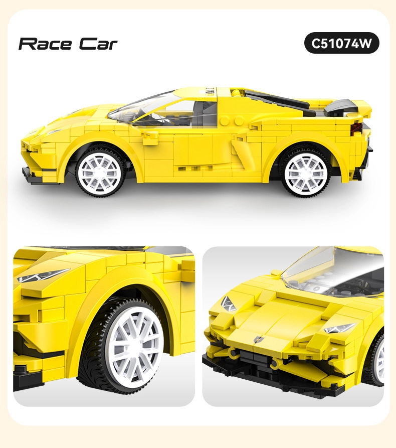 Siluetă aerodinamică joasă, caroserie galbenă cu elemente negre și roți din cauciuc pentru rulare lină pe diferite suprafețe.