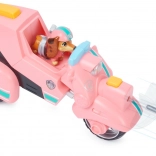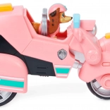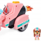 Vehiculul roz cu trei roți, cu numărul 22, roți argintii și efect de flacără aduce copiilor atmosfera reală a misiunilor de salvare din filmul Paw Patrol: The Movie.