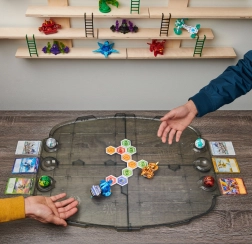 Terenul robust, pliabil, cu margini înălțate, menține Baku-jetoanele și figurinele la locul lor. Modelul hexagonal facilitează pregătirea rapidă a jocului și dueluri clare.