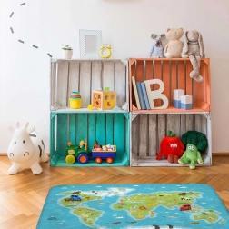 Descoperiți covorul pentru copii moale și colorat ACHOKA, cu motiv de hartă a lumii și animale, care transformă camera într-un loc distractiv și educativ. Datorită suprafeței fine, este ideal pentru joacă și exerciții, iar partea inferioară antiderapantă asigură siguranță pe pardoselile netede. Dimensiunea de 100 × 150 cm oferă spațiu suficient pentru imaginație și confort.