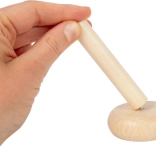 Înfășurarea inelelor pe țăruș dezvoltă coordonarea mână–ochi, prinderea și concentrarea – o primă activitate Montessori ideală.