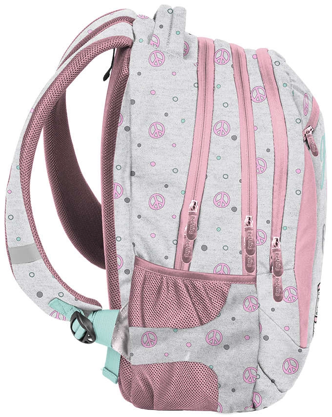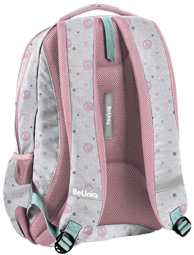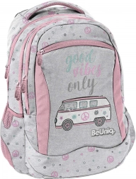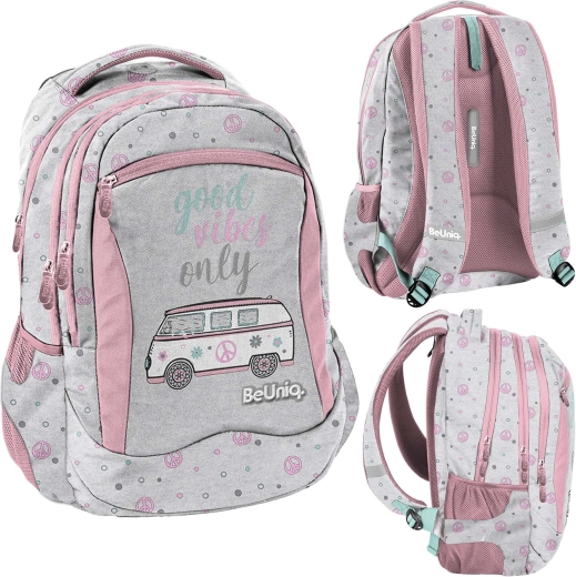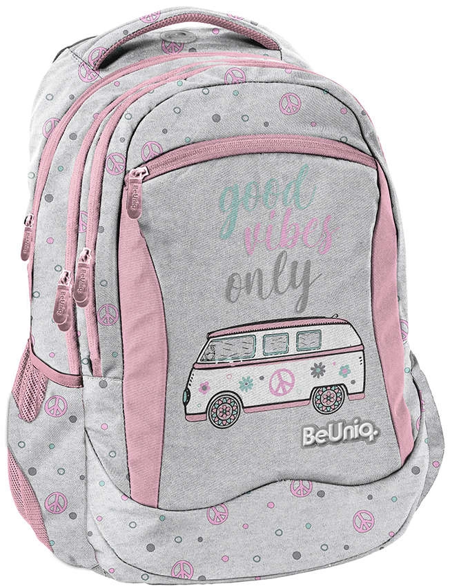 Căutați un rucsac școlar de încredere, care să reziste utilizării zilnice și să arate excelent? BeUniq Good Vibes Only, în combinația de gri deschis și roz cu motive jucăușe și inscripția „good vibes only”, atrage atenția din prima clipă. Datorită organizării inteligente a lucrurilor și sistemului dorsal confortabil, este ideal pentru școală și timp liber.