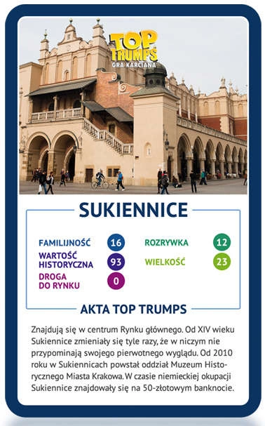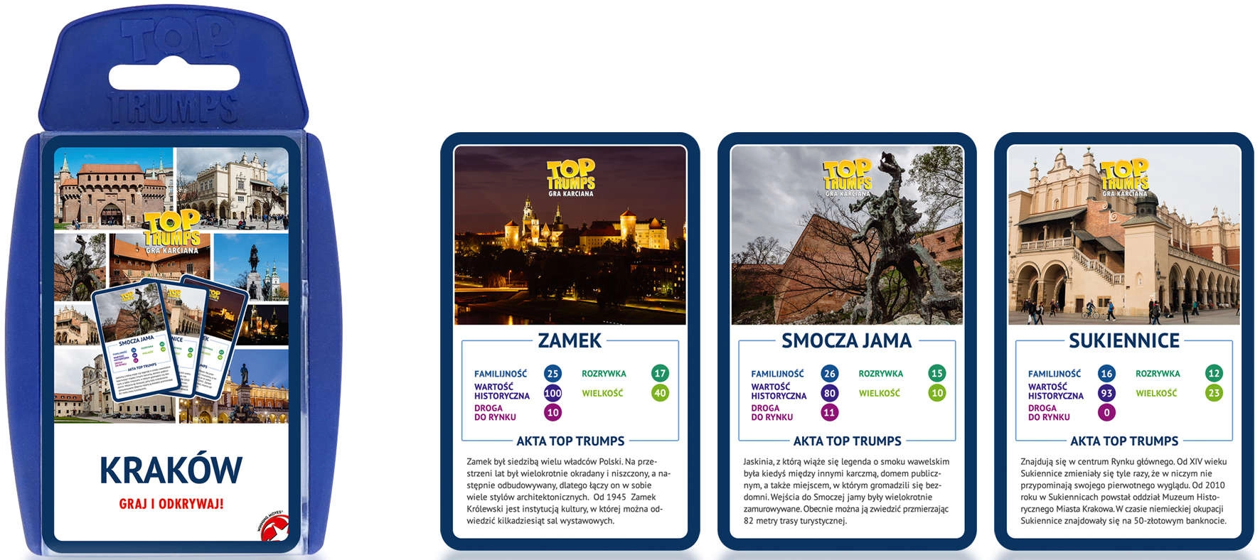 Descoperă jocul de cărți TOP TRUMPS Cracovia, rapid și distractiv, ideal pentru călătorii și pentru acasă. Reguli simple, comparare palpitantă a valorilor și 33 de cărți într-o husă practică care garantează distracție pentru copii și adulți. O alegere excelentă pentru cel puțin 2 jucători, de la 6 ani, cu o durată a jocului de aproximativ 15 minute.