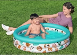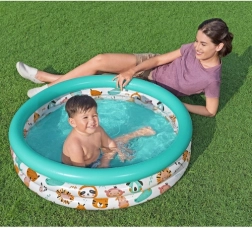 Faceți-le copiilor o bucurie cu propria lor mini piscină. Piscina rotundă BESTWAY, cu diametrul de 102 cm și înălțimea de 25 cm, încape pe orice peluză sau terasă. Marginea superioară moale și cele trei camere de aer independente asigură stabilitate și siguranță în timpul jocului, în timp ce PVC-ul de calitate rezistă utilizării de zi cu zi.