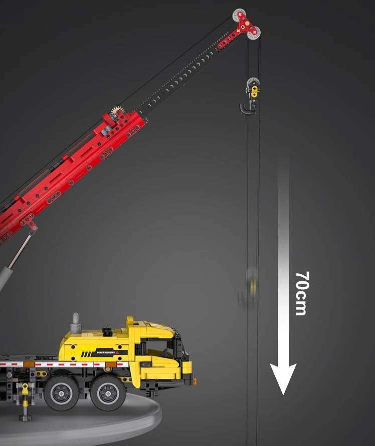 Acest model tehnic din ediția Make Your Bricks Move va încânta orice fan al utilajelor de construcții. Șasiul galben cu mai multe axe, cabina realistă și lungul braț telescopic roșu cu troliu oferă o experiență autentică de construire și joacă. Datorită rotirii suprastructurii la 360° vei muta ușor încărcătura exact acolo unde este nevoie.