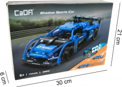 Construiește-ți propria mașină sport Shadow de la CADA din 380 de piese. Modelul are mecanism cu arc (pull‑back), roți din cauciuc pentru rulare pe diverse suprafețe și elemente mobile, inclusiv eleron, volan și uși care se deschid. Caroseria albastră cu detalii negre va încânta atât micii, cât și marii pasionați de seturi de construcție și automobile.