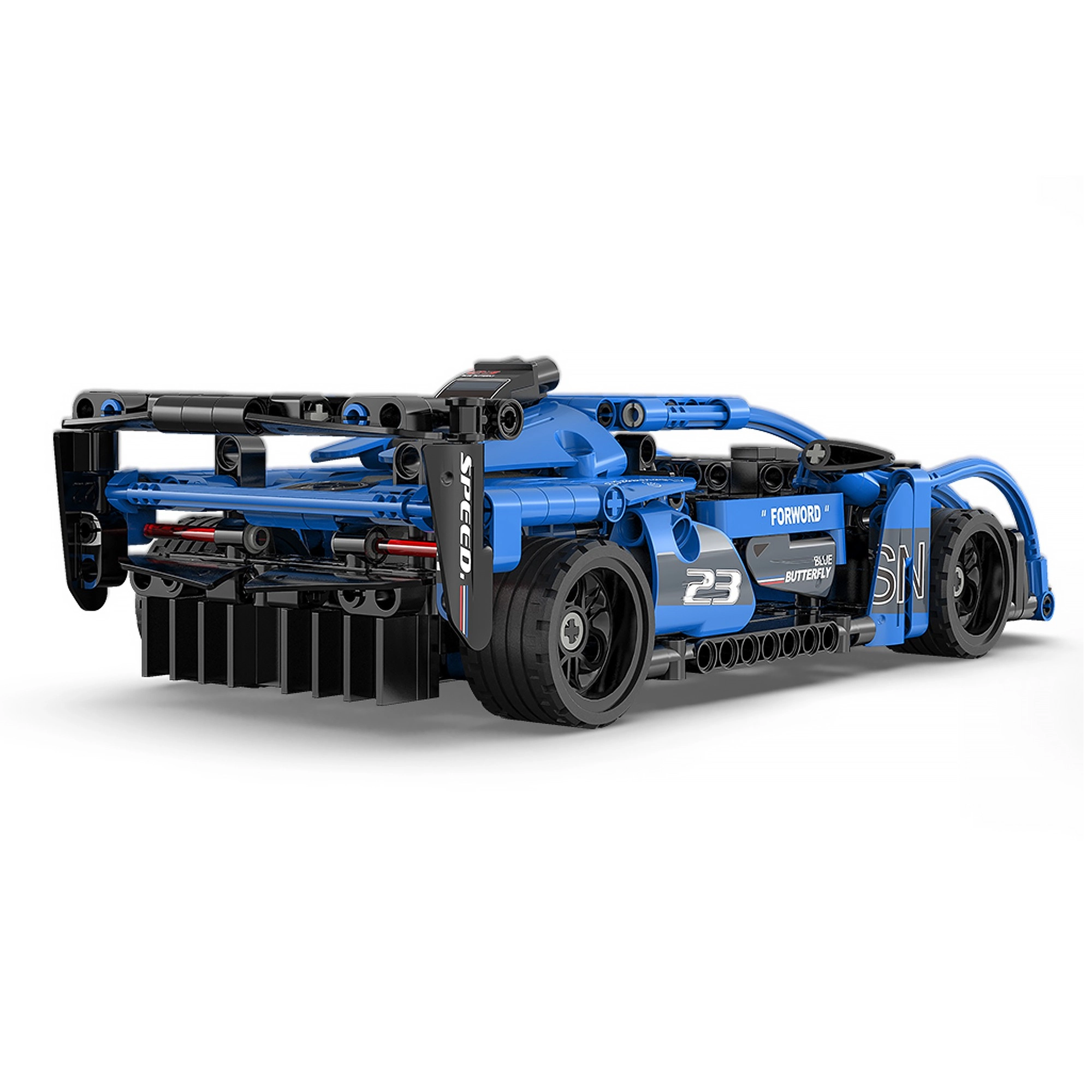 Setul de construcție al mașinii sport Shadow este conceput cu atenție la detalii, ceea ce amplifică experiența de joacă și asamblare. Datorită mecanismului cu retragere este suficient să tragi mașina înapoi și să o eliberezi – va porni înainte și poate parcurge peste 10 metri. Roțile din cauciuc asigură aderență bună și rulare lină.