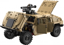 Acest model de mari dimensiuni HUMVEE la scara 1:8 îi va încânta pe constructorii pretențioși și pe fanii seturilor tehnice. Detaliile realiste includ grila radiatorului, compartimentul motor, bordul, volanul, oglinzile retrovizoare, scaunele față duble și portbagajul gândit inteligent. Rotița de control manual permite rotirea turelei, acționarea aruncătorului de grenade și rotirea mitralierei.