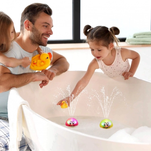 Jucăria veselă pentru apă poate oferi distracție extraordinară! Așezarea jucăriei pe suprafața apei activează efectele de lumină, și în plus, jucăria începe să stropesca cu apă!