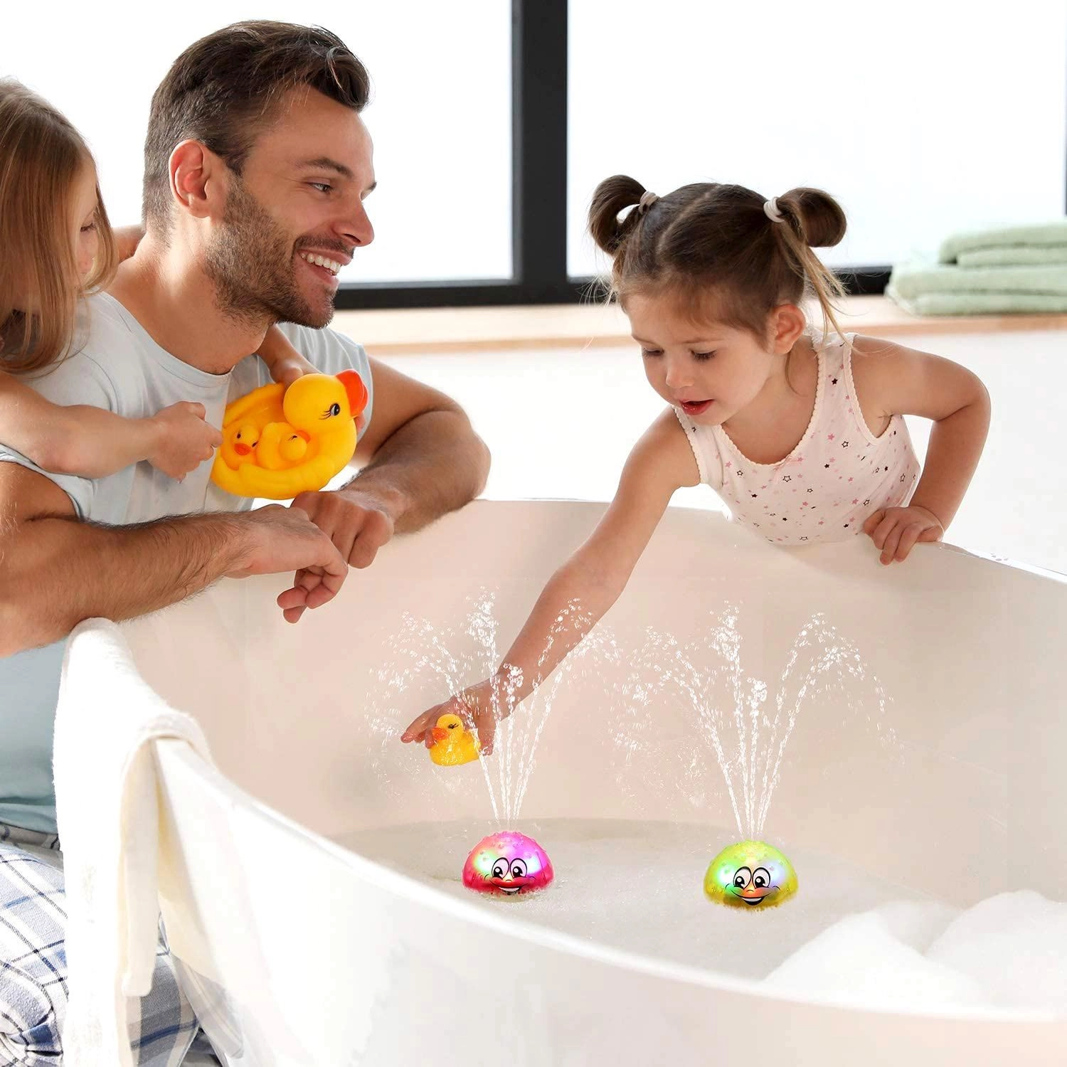 Spectacol amuzant, jucăria luminează și stropeste cu apă, îi va plăcea fiecărui copil. Frica de apă va dispărea.