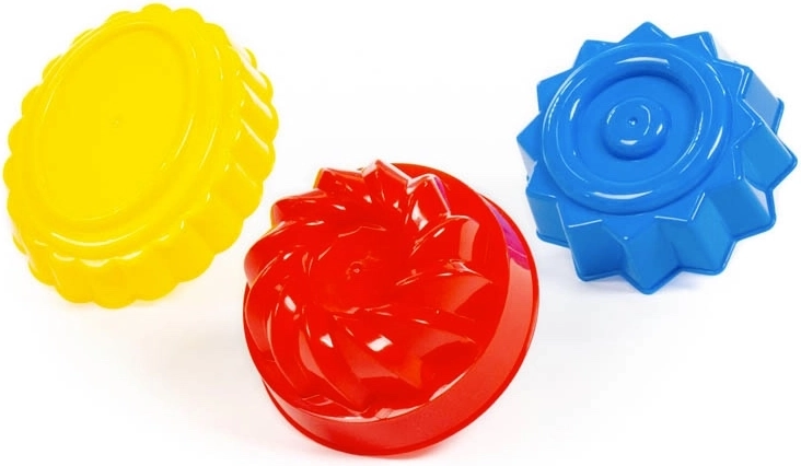 Descoperiți joaca creativă cu setul de 3 forme pentru prăjituri din plastic de calitate. Datorită culorilor vii și formelor diferite, copiii pot crea cu ușurință modele frumoase în nisip sau din materiale de modelat. Producătorul POLESIE este o garanție a calității europene și a materialelor sigure.