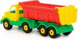 Acest camion basculant robust din plastic, cu remorcă, este ideal pentru micii constructori. Datorită benei basculante și oblonului spate mobil, copiii pot muta cu ușurință nisip, cuburi sau alte mărunțișuri. Construcția ușoară, dar solidă, este potrivită pentru joacă în interior și în exterior.