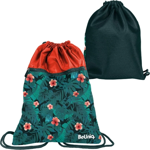 Deschiderea ușoară este asigurată de sistemul dublu de strângere, care servește totodată drept bretele reglabile. Buzunarul frontal cu fermoar este ideal pentru mărunțișuri, telefon sau chei. Designul modern cu motiv de junglă subliniază stilul personal.