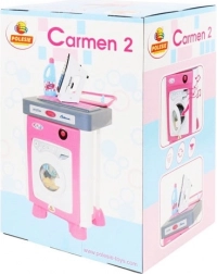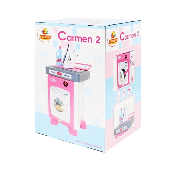 Această elegantă mașină de spălat pentru copii CARMEN 2 aduce celor mici un joc distractiv și realist de-a gospodăria. Ușa frontală se deschide și se închide cu semnal sonor, după alegerea programului tamburul se rotește și se aud sunete de funcționare. Întregul set sprijină imaginația, motricitatea fină și dezvoltarea abilităților cotidiene.