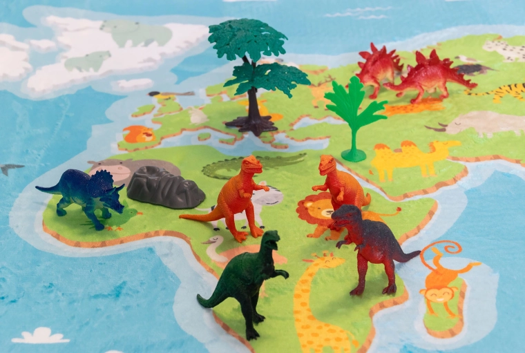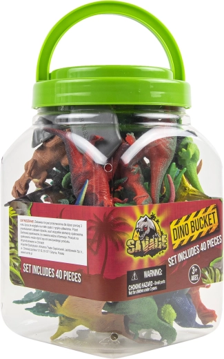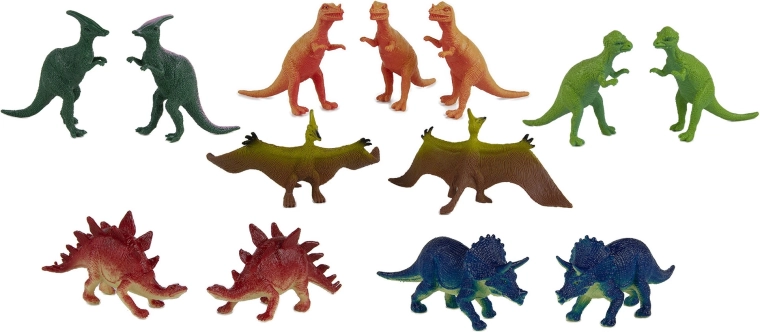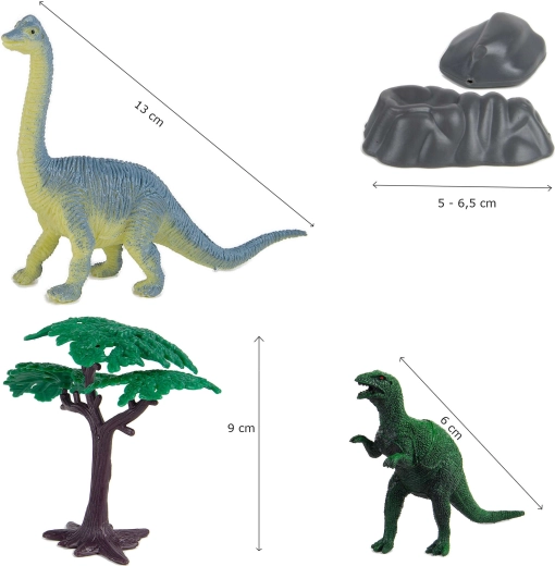 Selecția variată de dinozauri, copaci și pietre le permite copiilor să creeze propriile scenarii preistorice și să își dezvolte imaginația și perseverența în joc.