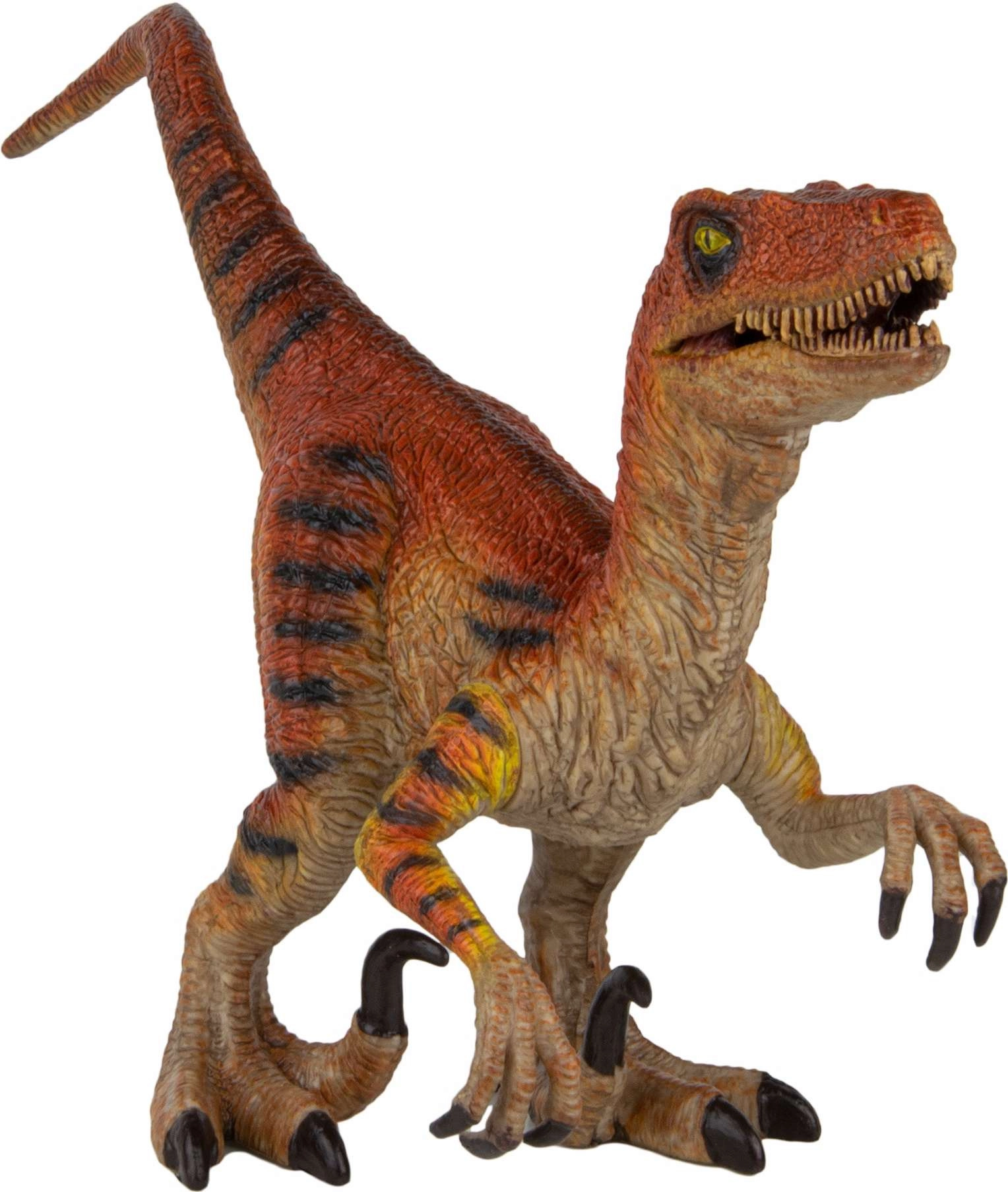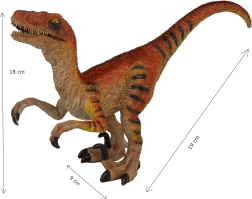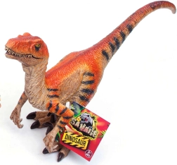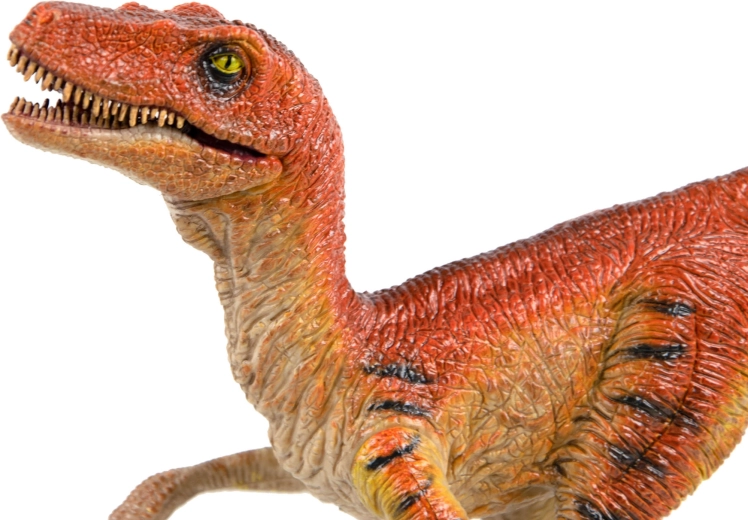 Această figurină realistă de Velociraptor îi va încânta pe micii și marii pasionați de preistorie. Textura de suprafață precisă, coloritul portocaliu–maroniu cu dungi negre și detaliile proeminente ale dinților și ghearelor oferă un aspect deosebit de credibil. Maxilarul mobil și labele anterioare adaugă interactivitate și dezvoltă imaginația copiilor.
