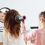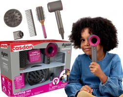 Setul de coafor pentru copii CASDON cu iconicul Dyson Supersonic oferă celor mici o experiență autentică de salon. Jucăria suflă aer, are efecte luminoase și datorită duzelor magnetice/interschimbabile permite schimbarea stilului de uscare. Peria rotundă și pieptenele lat incluse stimulează imaginația în crearea coafurilor pentru copii, păpuși și prieteni.