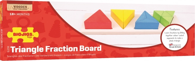 Patru seturi colorate de triunghiuri pe o bază din lemn îi conduc pe copii către înțelegerea principiului părților și întregului. Excelent pentru o primă familiarizare cu fracțiile, fără presiune inutilă.