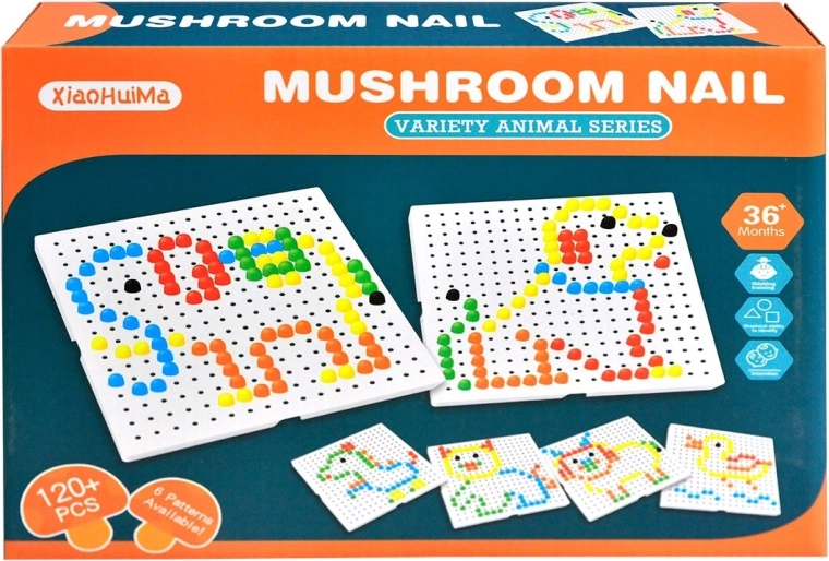 Mozaic animăluțe 120 buc este o alegere excelentă pentru primele activități creative. Piesele colorate se introduc ușor în suport și îi motivează pe copii să creeze propriile imagini sau după modele. Jucăria susține coordonarea mână–ochi, recunoașterea culorilor și gândirea logică.