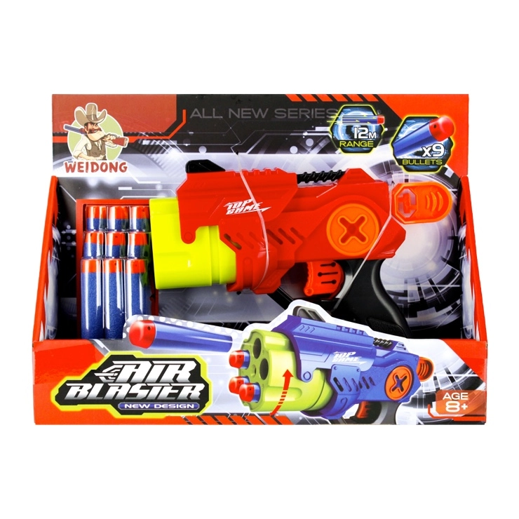 Pachetul include pistolul și 9 săgeți din spumă, ceea ce reprezintă un set de pornire perfect pentru competiții de precizie și viteză. Sunt disponibile două culori atrăgătoare – roșu și albastru. Jucăria este destinată copiilor de la 8 ani și este ambalată într-o cutie cu fereastră, fiind excelentă și ca cadou.