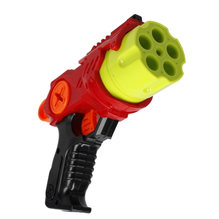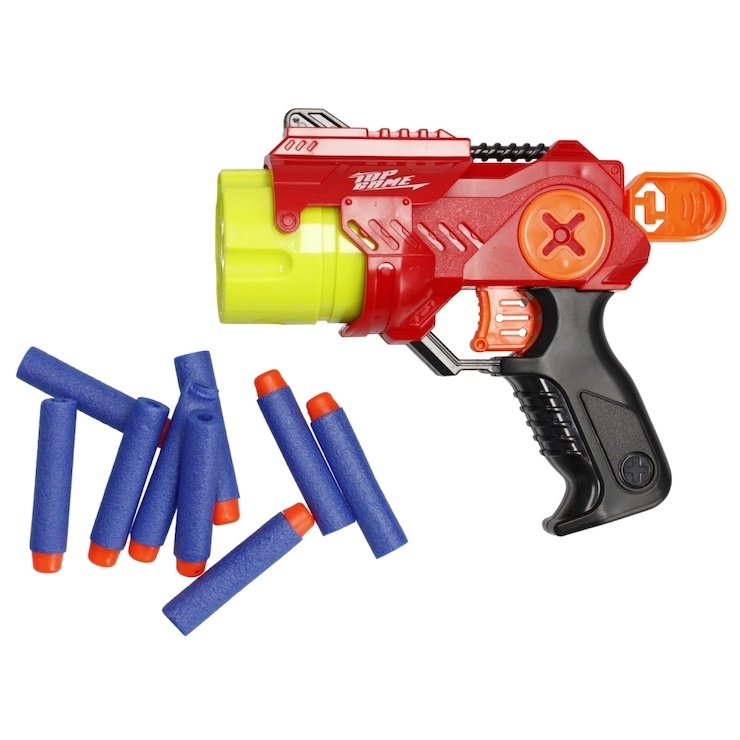 Pistol de jucărie ușor și ușor de manevrat, cu gloanțe din spumă moi și netoxice pentru distracție în siguranță. Este suficient să introduci săgețile în încărcător, iar la apăsarea trăgaciului vor fi lansate. Include 9 săgeți din spumă, două variante de culoare (roșu și albastru) și dimensiuni compacte ideale pentru mâini mici. Potrivit pentru copii de la 8 ani.