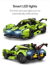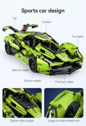 Mașina sport Blade se asamblează ușor din 432 piese și oferă o experiență realistă de condus datorită controlului RC și aplicației. La mers înainte se aprind farurile LED, iar la mers înapoi stopurile LED. Roțile din cauciuc robuste asigură stabilitate și aderență, iar caroseria verde cu accente negre va încânta orice fan al supermașinilor.