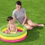 În zilele fierbinți de vară, nu există o răcorire mai bună pentru cei mici decât o piscină gonflabilă! Piscina este potrivită ca bazin de mică adâncime. Piscină gonflabilă colorată cu trei camere, ideală pentru grădină, care le va aduce copiilor cu siguranță multă bucurie. Podeaua din PVC moale previne juliturile și are efect antiderapant.