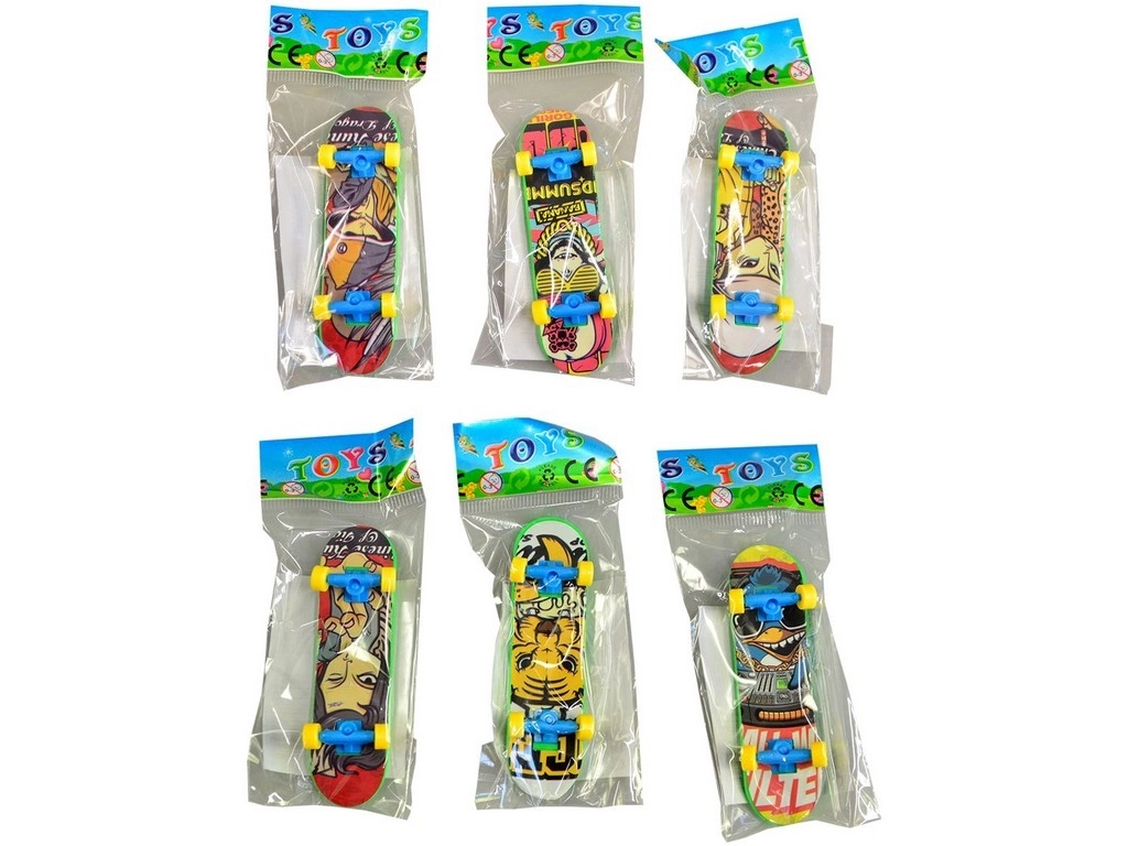 Skateboard distractiv pentru degete, pentru micii și marii fani ai fingerboard-ului. Dimensiune compactă de 9 cm, potrivit de la 3 ani, disponibil în 6 variante diferite pentru colecționare și joacă. Jucărie excelentă pentru dezvoltarea motricității fine și a creativității.