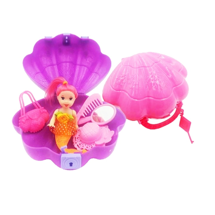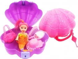 Set drăguț cu păpușă – o sirenă într-o valiză din plastic în formă de scoică, ideală pentru călătorii. Conține tot ce este necesar pentru joacă creativă: sirena, pălăriuță, oglindă, pieptăn, geantă și cheiță. La alegere sunt trei culori – roz, mov sau albastru. Nerecomandat copiilor sub 3 ani.