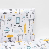 Setul de lenjerie NEW BABY este alegerea ideală pentru bebeluși și copii mici. 100% bumbac de calitate, plăcut la atingere, evacuează bine umiditatea și nu irită pielea. Designul cu motiv de oraș în tonuri de muștar face pătuțul mai primitor și susține o atmosferă plăcută pentru adormire.
