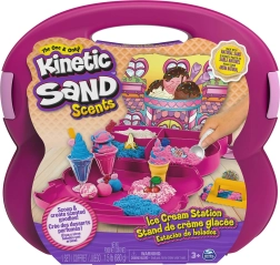 Nisipul parfumat Kinetic Sand imită senzația nisipului ud, dar mâinile rămân complet uscate. Datorită proprietăților kinetice unice, granulele se unesc, nisipul își păstrează forma și nu se împrăștie. Copiii pot modela litere, construcții și bunătăți tip „înghețată” – imaginația nu are limite.