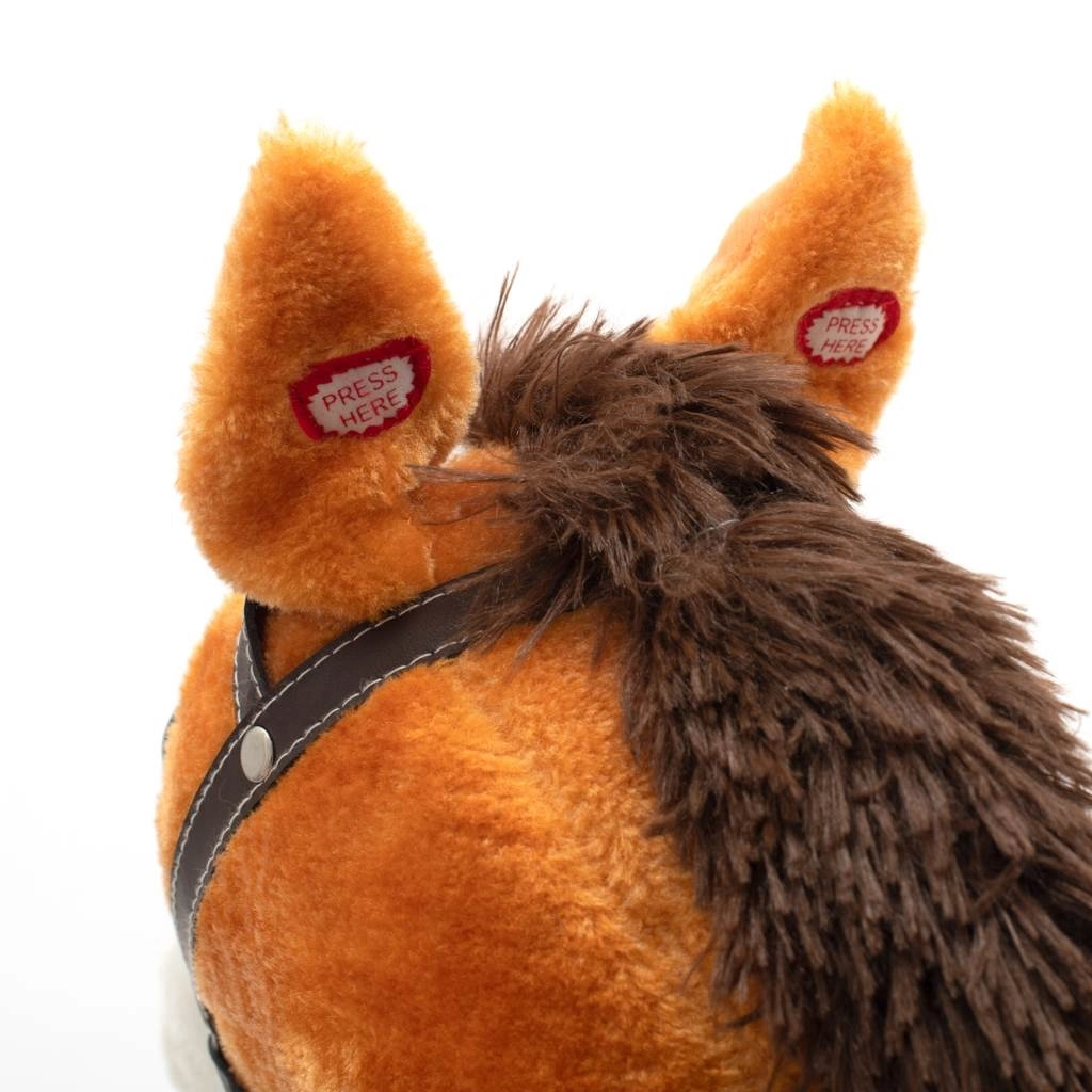 La apăsarea urechilor, calul redă o melodie sau sunetele unui cal la trap, în același timp deschide gurița și își mișcă coada – perfect pentru dezvoltarea imaginației.