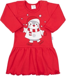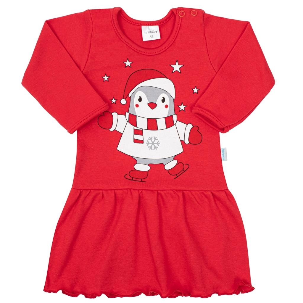 Rochița adorabilă pentru copii cu bentiță NEW BABY Winter Penguin o va încânta pe orice mică domnișoară. Este realizată din 100% bumbac plăcut, are mâneci lungi, închidere cu capse pe umăr și este decorată cu un motiv vesel cu pinguin în culoare roșie frumoasă. Setul include o bentiță elastică ce se adaptează perfect căpușorului.