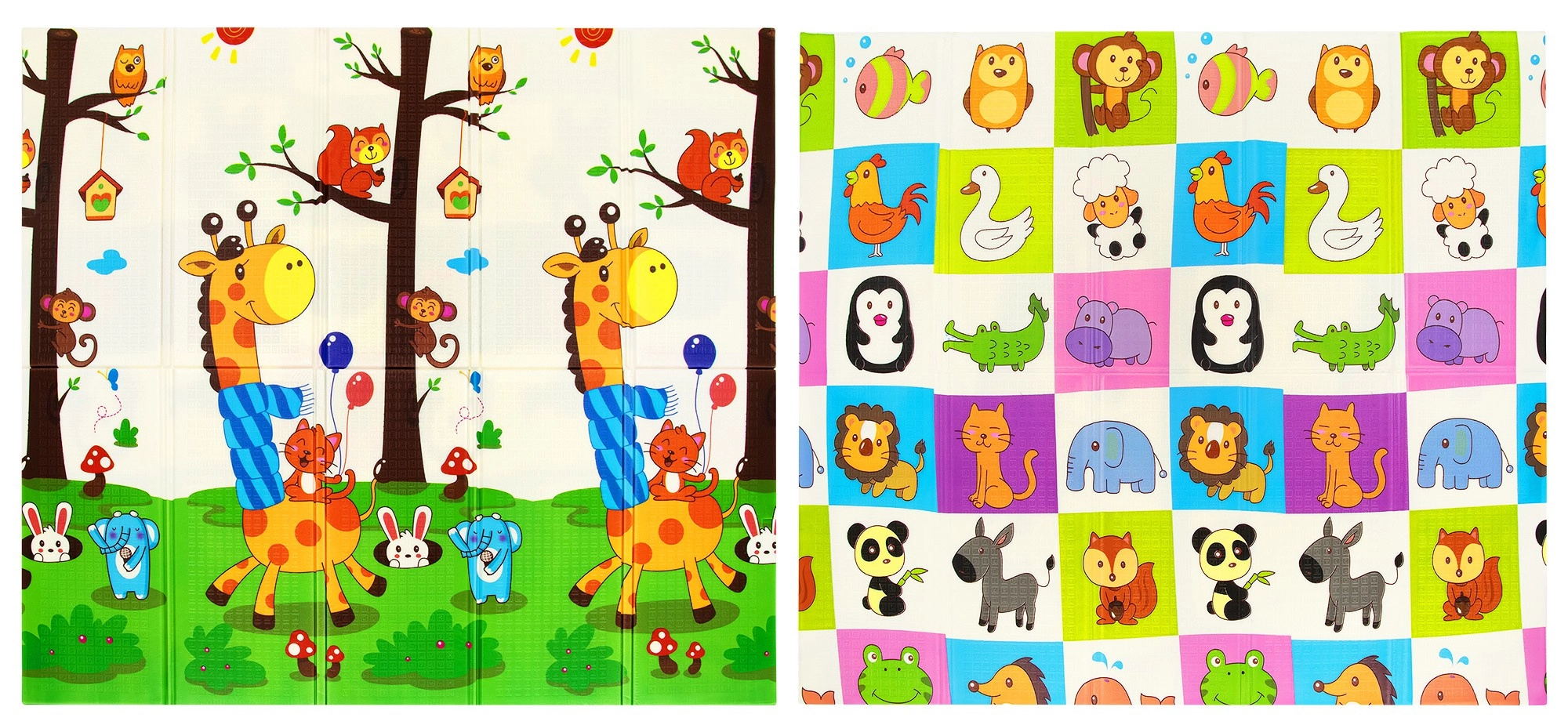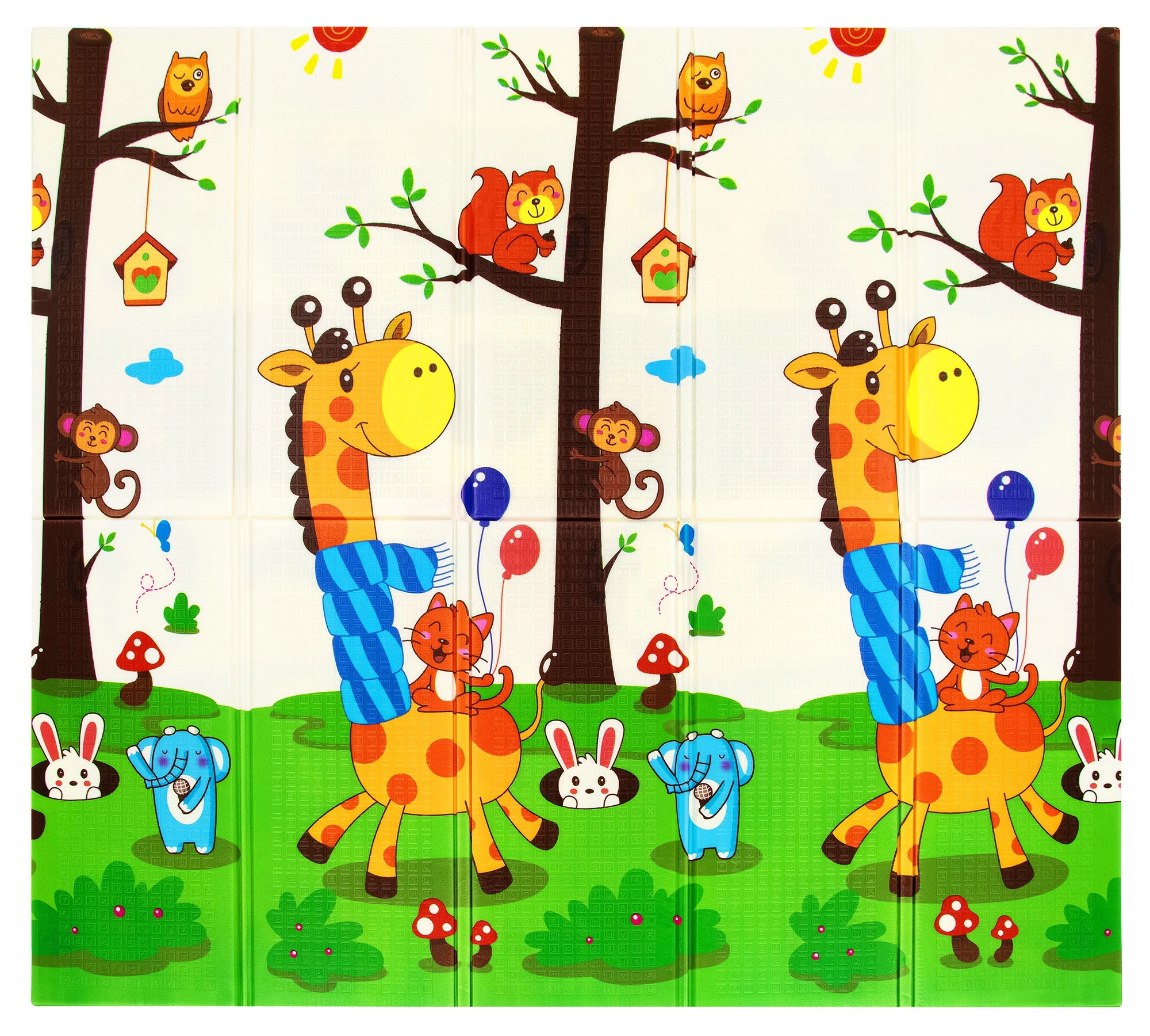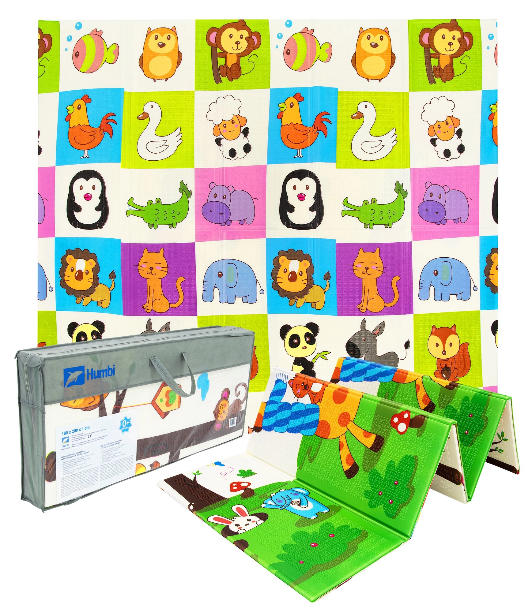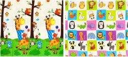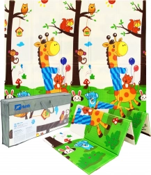 Spuma XPE premium oferă saltelei HUMBI o amortizare excelentă a șocurilor, izolație termică față de podeaua rece și o durată lungă de viață. Designul față-verso, cu girafe și o grilă de animăluțe, stimulează dezvoltarea senzorială și transformă salteaua într-un accesoriu plăcut pentru camera copilului sau living.