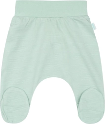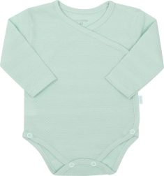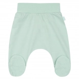 Setul este asortat într-o modernă nuanță mentă cu un model textil atrăgătorpentru maternitate și pentru purtarea zilnică. Datorită prezentării într-o cutie eco, este potrivit și ca cadou drăguț pentru proaspeții părinți.