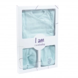 Acest set pentru nou-născuți New Baby I AM este conceput pentru confort și siguranță maxime. Body-ul cu deschidere completă, cu capse pe toată lungimea și între piciorușe, ușurează îmbrăcarea și schimbatul scutecului. Pantalonașii cu botoșei au talie mai lată, nu strâng și stau foarte bine. Căciulița cu tiv mai lat nu alunecă și se așază plăcut.