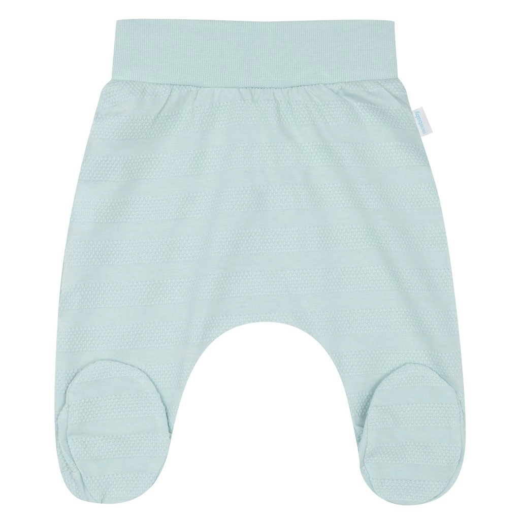 Acest set a fost conceput ținând cont de nevoile nou-născuților și de pielea lor sensibilă. Datorită tricotului de bumbac de calitate, este respirabil, moale și plăcut la atingere. Detaliile practice, precum închiderea laterală pe toată lungimea body-ului și talie mai largă și elastică la pantalonii tip semisalopetă, ușurează schimbarea și oferă confort fără presiune.