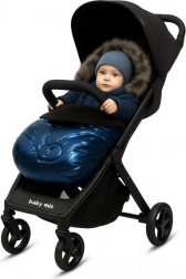 Gluga cu blăniță decorativă protejează capul de vânt și frig, iar blănița se poate detașa simplu prin capse sau butoane. Pentru fixare sigură sunt prevăzute orificii pentru centuri în 5 puncte. Design modern, culoare albastră atrăgătoare și execuție de calitate îl fac un cadou excelent pentru orice mămică modernă.